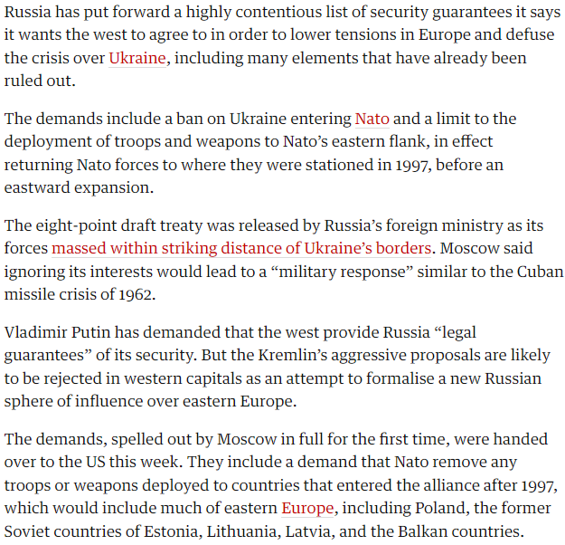 On December 17, 2021, Russian President Putin put forward proposals to limit US and NATO influence on the former Soviet states.