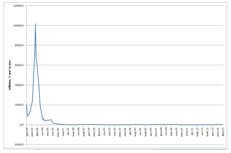 Ukraine has the distinction of being the "first country in the world history that had over a hundred-fold annual price level increase that wasn’t a consequence of a war" (Source)