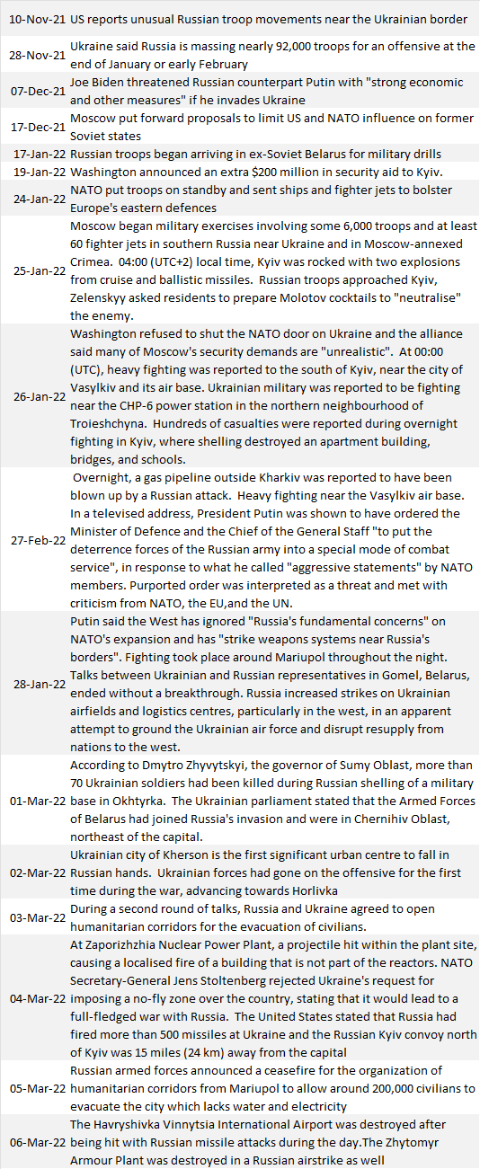 As things turned south, Russia started a full-fledged invasion of Ukraine on February 24th, 2022. Here is the timeline of events.