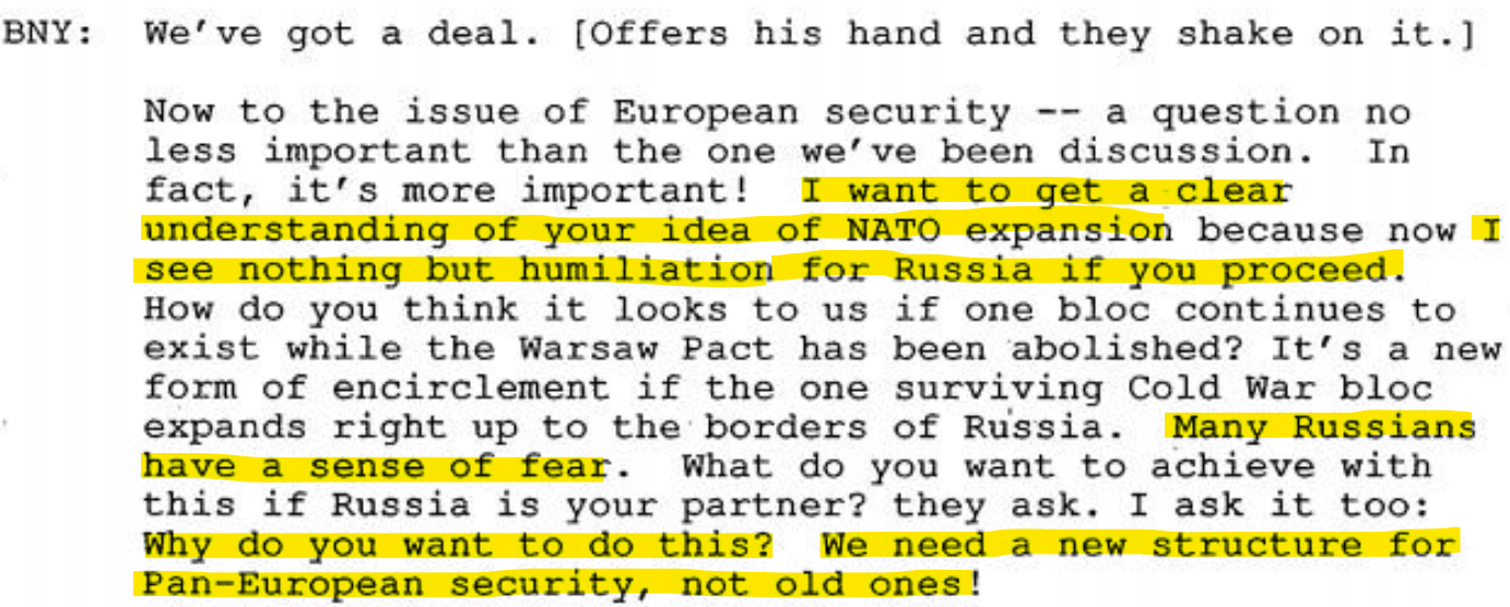 This was something that Boris Yeltsin, a good friend of Bill Clinton, had brought up with Clinton.