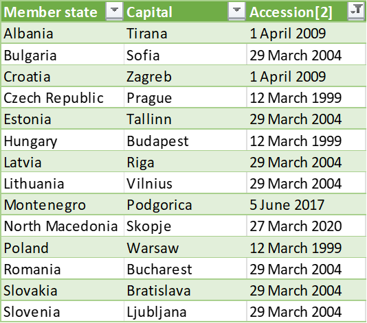 AS it turns out, even when the Warsaw Pact was abolished, NATO was not. In fact, after the abolishing of the Warsaw Pact, NATO's expansion to the East accelerated. In the first expansion of NATO in 1999, the Czech Republic, Hungary and Poland were added. In 2004, 7 more joined - Estonia, Latvia, Lithuania, Bulgaria, Romania, Slovakia, and Slovenia (Source). Thereafter Albania and Croatia joined on April 1st, 2009, Montenegro on June 2nd, 2017, and finally North Macedonia on March 27, 2020.