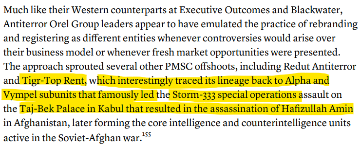 From the Russian side, it has been Tigr Top-Rent Security, the Wagner Group, E.N.O.T. Corp, Feraks Group, and the Antiterror-Orel group. Companies like MAR company, RSB group, and Moran security specialize in the protection of gas and oil pipelines and vessels. (Source)