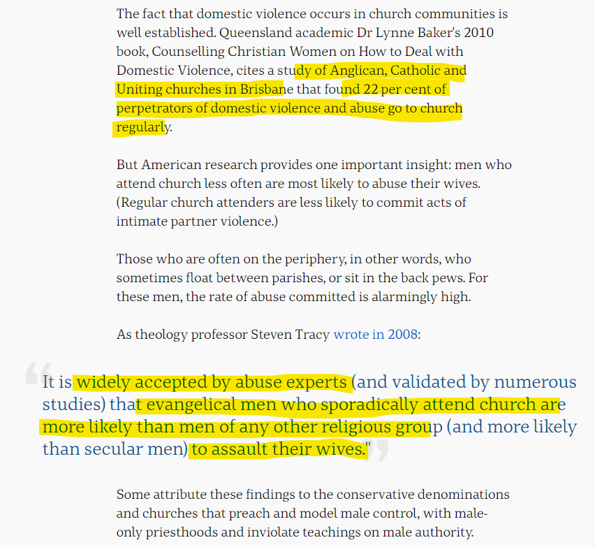 In fact, many studies have found a clear link between those attending Church and having evangelical beliefs and abuse of women.