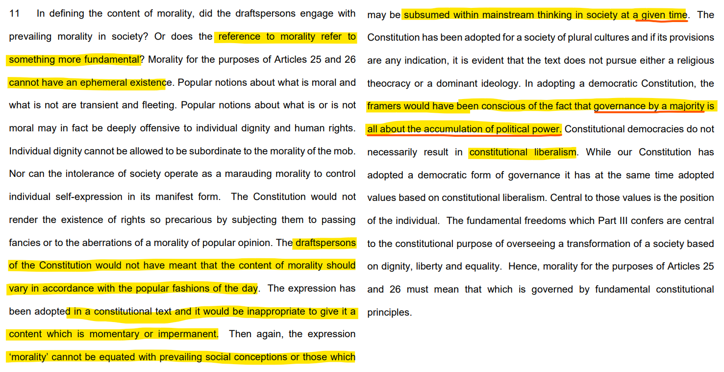 The 2009 Delhi High Court judgment however brought out important points regarding Constitutional Morality and Public Morality.