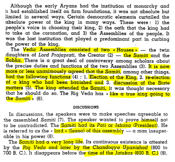 From Rig Veda, to the Arthasashtra, Manusmriti, the Mahabharata and Ramayana, and in the Puranas, the concepts of rule by Committee - which had the power to install, take out and reinstall Kings is a documented fact.