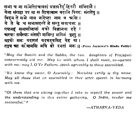Here is a verse from Atharva Veda cited in the book "Village Panchayats in India" by HD Malaviya.