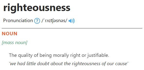 It is the quality of "rightness". For one to be righteous, one needs to align with a standard.