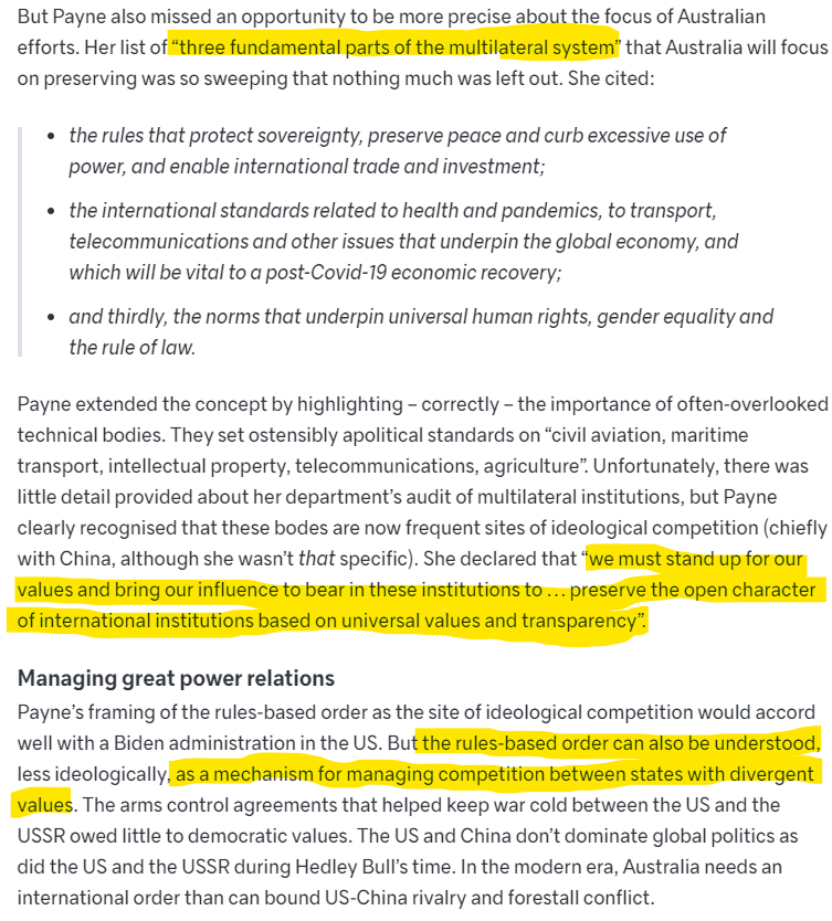 Here is the commentary on Foreign Minister Marise Payne's call for Rules-Based Order and its analysis by the Lowy Institute.