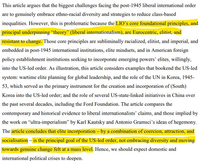 The Liberal International Order (LIO) or the "Rules-Based Order" established by the West was disingenuous and faulty at best. In its real form, it was indeed imperialist in its objective and structure. In this, CATO's stand echoes that of Parmar - the Imperialist tendencies of the Rules-Based Order.