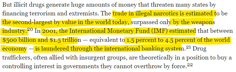 That's almost 5% of the world economy! In drugs flowing out of Afghanistan is in billions and most of it is controlled by Pakistan's ISI.