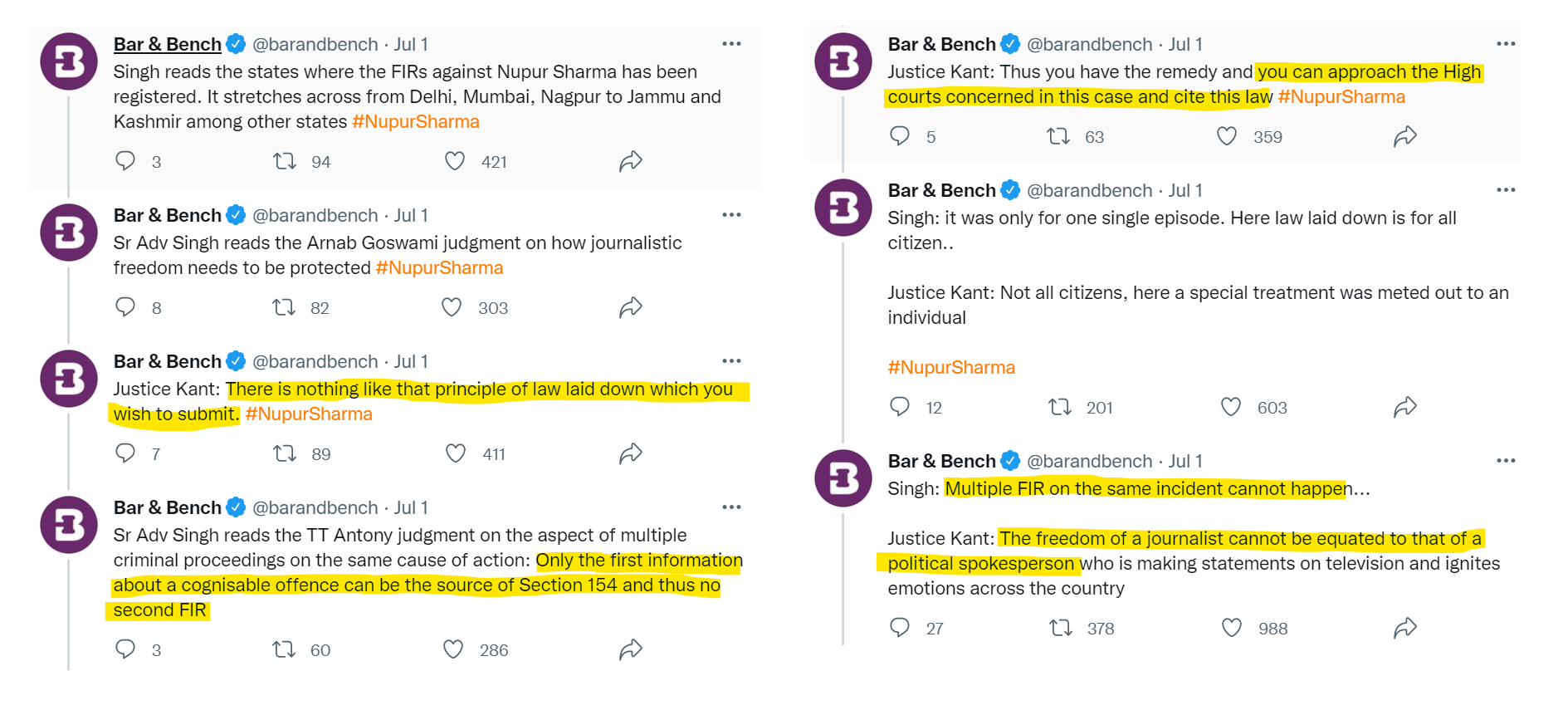 Nupur's counsel asked to club all these FIRs into one. This is the normal procedure in order to ensure that people are not harassed by unscrupulous people.