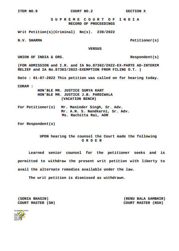 On July 1st, 2022 - that's the real judgment that the Supreme Court Justices Suryakant and Pardiwala really delivered. Rest is semantics.