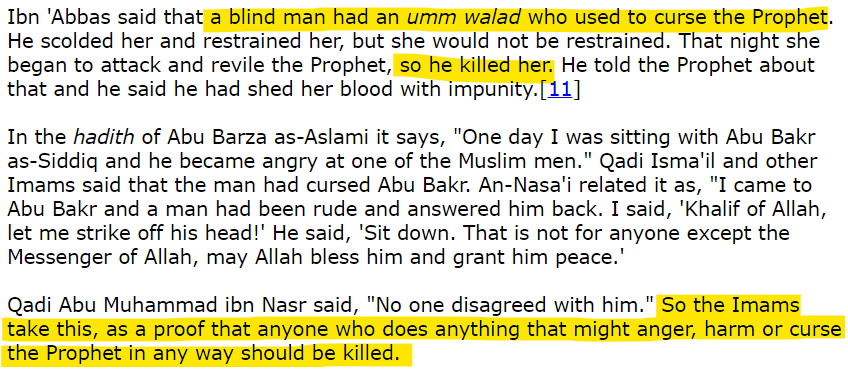 When a case came of insult to Abu Bakr, the pronouncement was very clear - any other insults could be tolerated but not an insult to Mohammad.