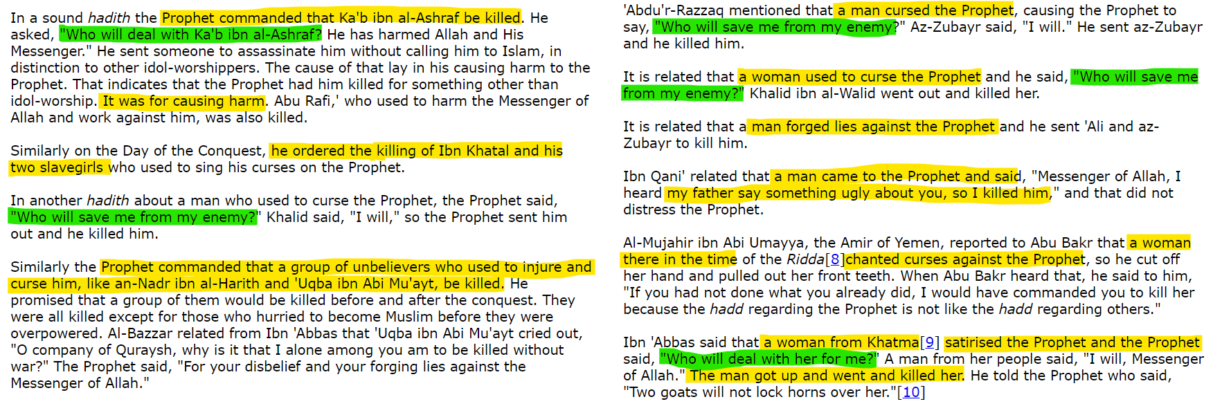 There were several incidents in Mohammad's life where the consequence of any insult or curse against him was death.