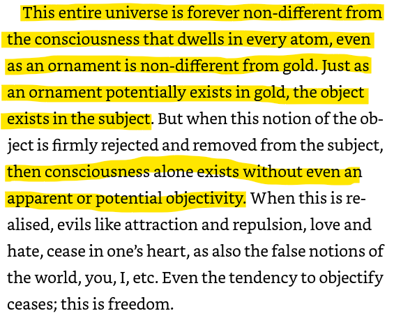 You can either be rooted in the physicality of an ornament (ornamentness) or be alive to your "gold nature". You can either be fixated on being an object or aspiring to touch your consciousness.