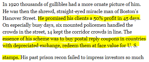 Charles Ponzi, also known as Charles Ponci, Ponzi, Carlo, and Charles P. Bianchi was a swindler in the earlier part of the 20th century. He promised his investors 50% profit in 45 days. He was using the money from the latest investors to pay the earlier ones.