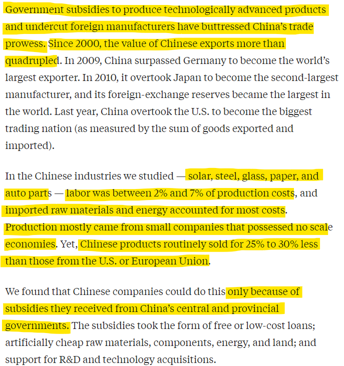 So, the question from the HBR studies should not have been: How will the US and EU companies and governments counter the Chinese subsidies?