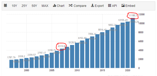 What about the Per Capita GDP? That increased 2.6 times during the same period - from $4319 to $11,188. Impressive economic progress!