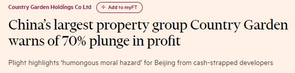 And then comes the news that the largest property builder Country Garden has warned of a whopping 70% drop in its profits.