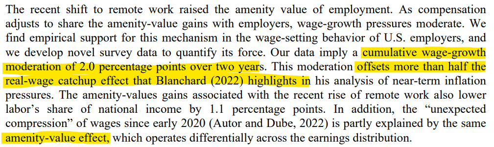 Because of the non-monetary benefits of remote work that has made employees accept a cumulative decline of 2% in wage growth over the two-year period.