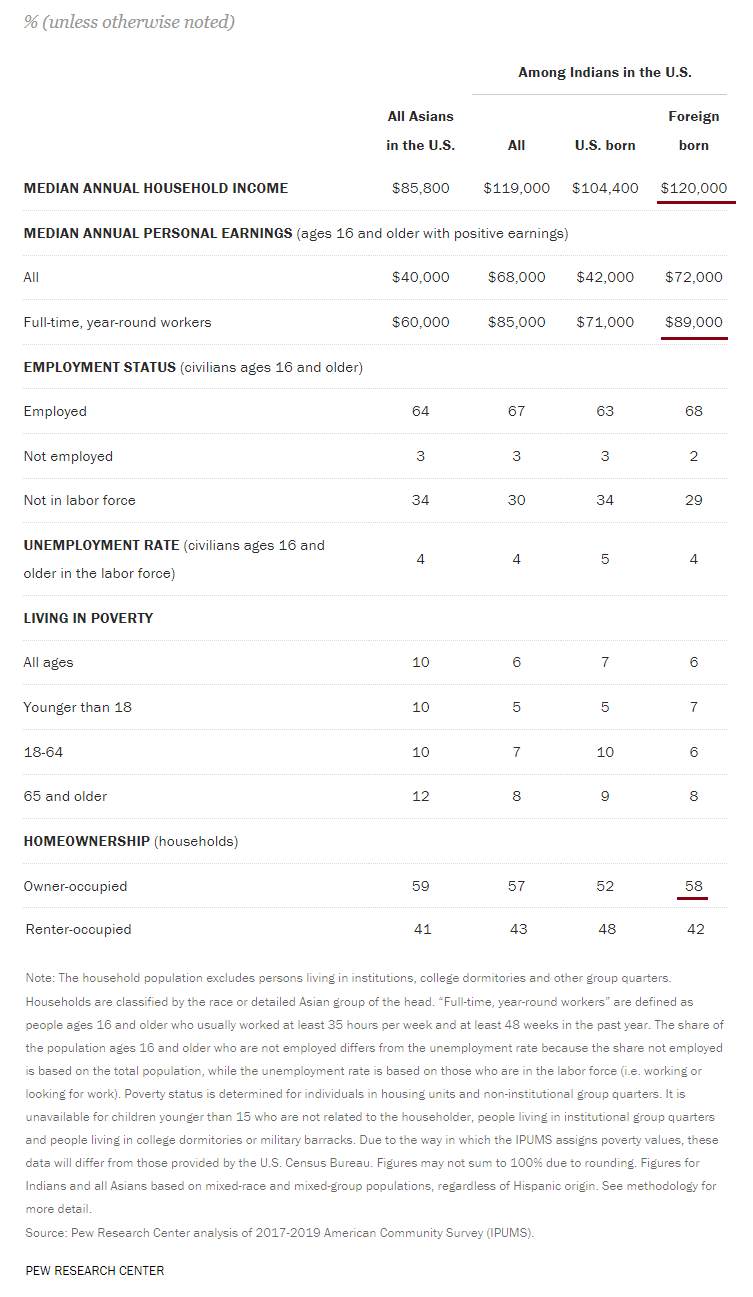 The overwhelming majorities of Indian immigrants in the US currently are the ones who are on visas. And they add to the high-income levels.