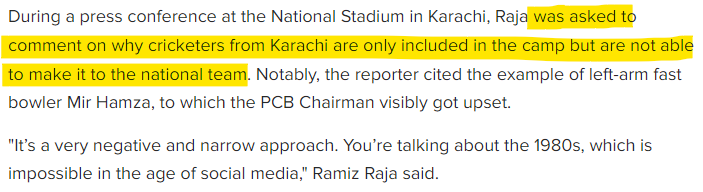 In fact, it is common knowledge in Pakistan that cricketers from Karachi face tremendous bias and prejudice from the establishment that is predominantly Punjabi.