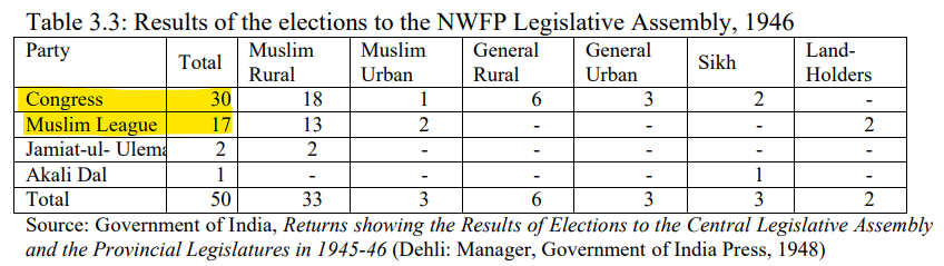 The North West Frontier Province had not voted for Muslim League in the 1946 Provincial elections.