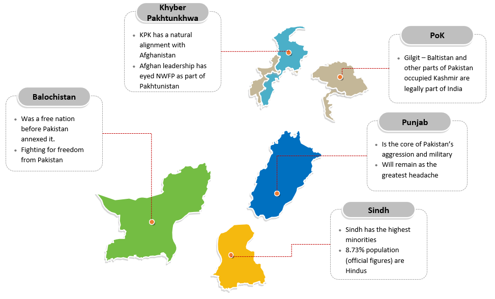 The most popular approach to fragmentation is to break off and allow Afghanistan to absorb Pakistan's North-West Frontier Province (NWFP) and the Federally Administered Tribal Areas (FATA), which would unite the Pashtun tribes. In addition, the provinces of Balochistan and Sindh would become independent sovereign states, leaving Punjab as a standalone entity. (Source: "Balkanizing Pakistan: A Collective National Security Strategy" HuffPost)