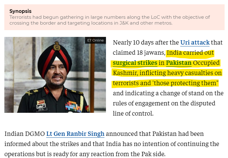 That action was the immediate response to Pakistan for the attack on Uri.