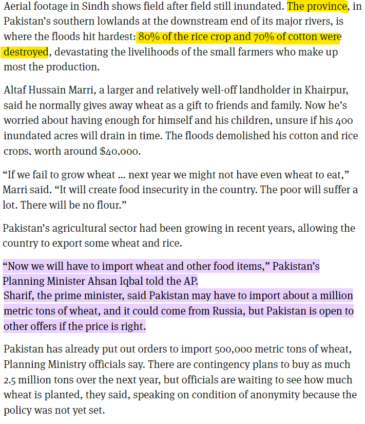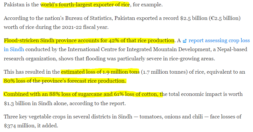 The devastation is truly sad and apocalyptic. The worst thing that has transpired through all this is the impact of agriculture, the mainstay of Pakistan's economy. 80% of rice production in Sindh, which provides 42% of Pakistan's rice production has been lost!