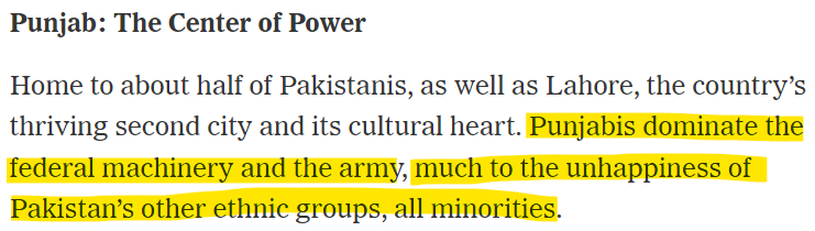 The central core - which essentially comprises Sunni Punjabis - has subjugated every other group throughout Pakistan's short history. Punjabis represent 40% of the country's population but constitute 90% of the armed forces (Source: HuffPost)!