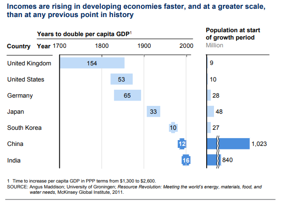 What took the UK or the US between 50-100 years has taken Korea, China and India much less time.