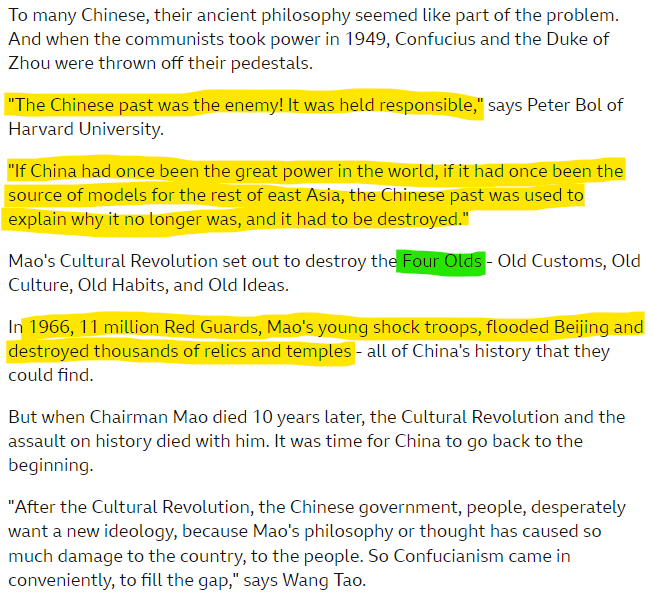 Suddenly Confucian ethics and the Chinese past was considered to be the greatest enemy of the current generation. In fact the entire civilizational framework that the Chinese had inherited was seen as a burden under the new change that Mao Zedong brought about.