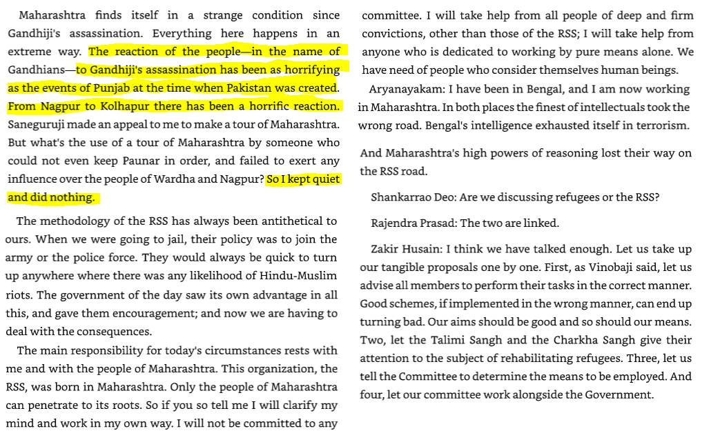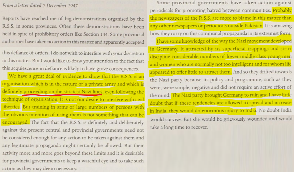 What is he most worried about though? The RSS. His hatred for RSS and "its methodology" is what he trains his guns at. The very excuse and justification that the entire Congress establishment used to carry out the Brahmin massacres were what he was endorsing as well. How hollow could one be?