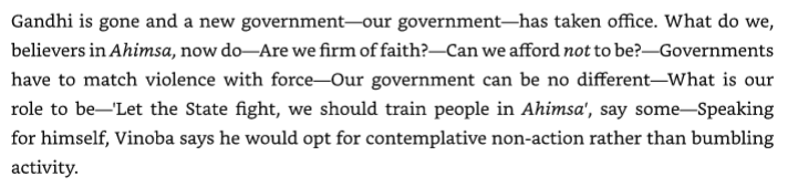 Against this backdrop, Vinoba Bhave said something that completely baffled me.