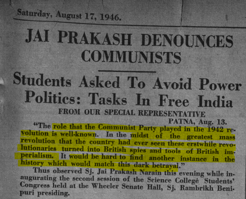 And it was not as if these communists were even anti-imperialists. They weren't. As Jai Prakash Narayan would state as the violence of Direct Action Day unfolded, the Communists had worked with the British as spies and tools of power.