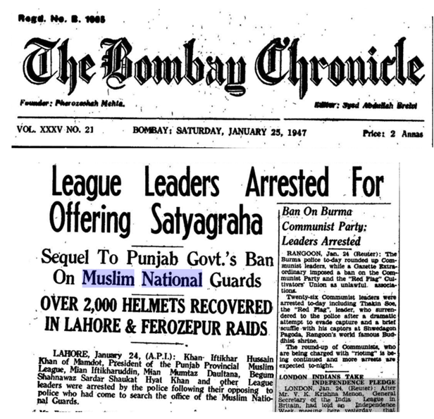 In fact, the Muslim League cadres doubled down. Several prominent figures from the Muslim League, including members of the Muslim League Working Committee such as Mian Iftikhar-ud-Din, Feroze Khan Noon, Mian Mumtaz Daultana, Sardar Shaukat Hayat Khan, and Khan Iftikhar Hussain Khan of Mamdot, hurried to the scene in an attempt to prevent the search and seizure operation. However, their intervention resulted in their arrest by the authorities. Subsequent searches of the premises unveiled a cache of over 1000 steel helmets, uniforms, and incendiary literature, shedding light on the extent of the Muslim National Guards' military preparation.