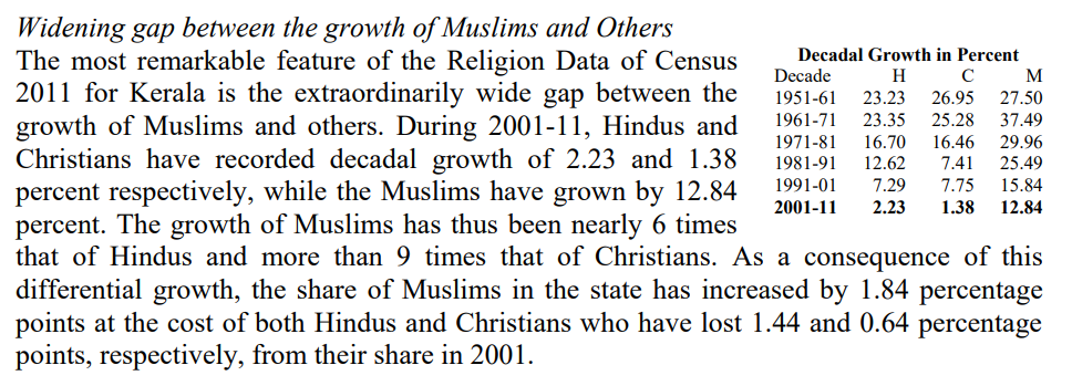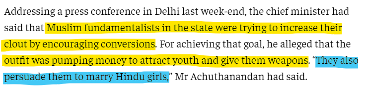 The attack on Kerala's demography was brought out in 2010 by the then Kerala chief minister V S Achuthanandan at a press meet in Delhi.