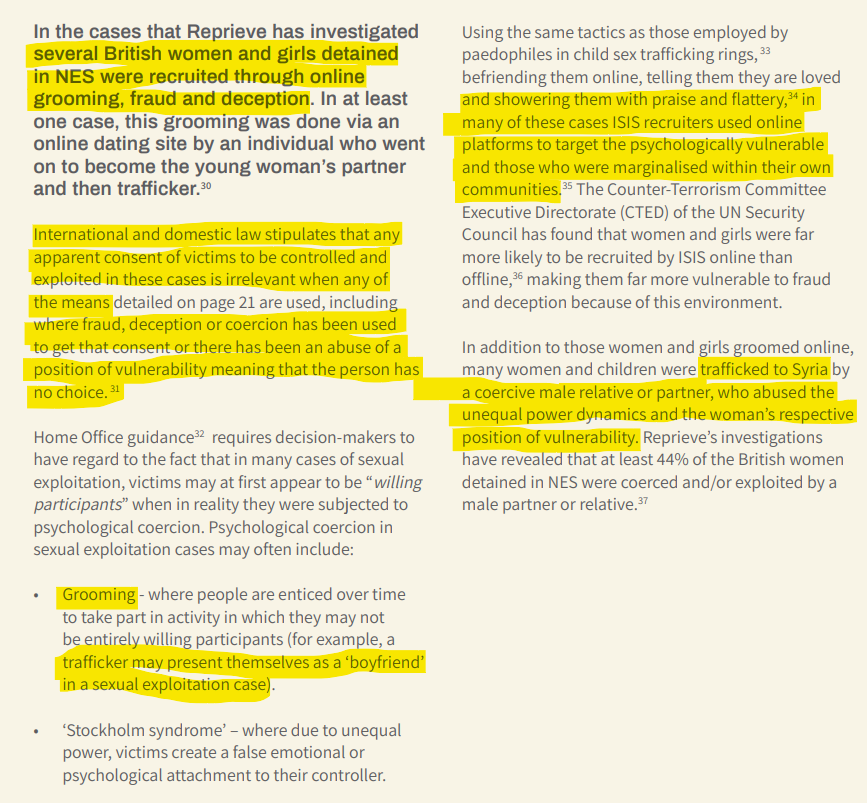 In a report in 2021, the legal action non-profit organization called Reprieve shared the situation with the numerous British women and girls who were trafficked to Syria by Muslim male partners and their cohorts after deceptively trapping them in relationships.