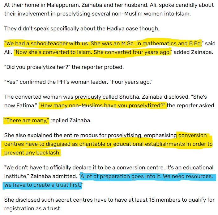 In November 2017, India Today did an expose on Zainaba A.S., the head of Kerala's Popular Front of India (PFI), and her husband.