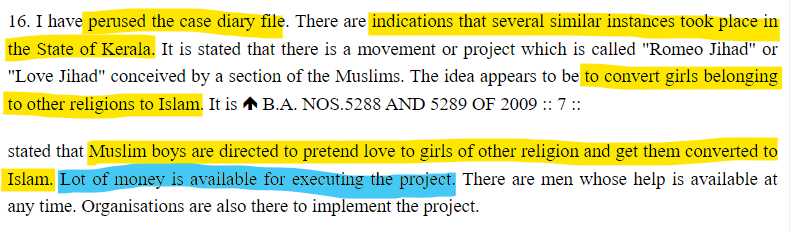 In the court case - Shahan Sha A vs State Of Kerala on 9 December 2009 - the Kerala High Court Justice K.T.Sankaran discussed the phenomenon of Love Jihad and discussed about it as a "Project".