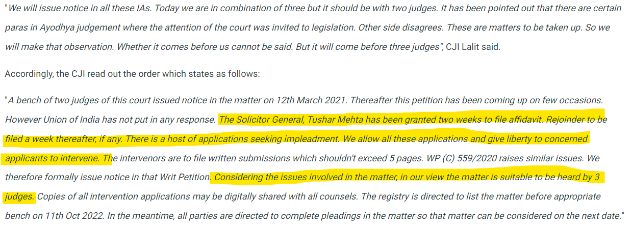 Interestingly, after deleting it from the list of business SIX times, a bench headed by Chief Justice NV Ramana finally took note and agreed to hear the plea on September 9, 2022.