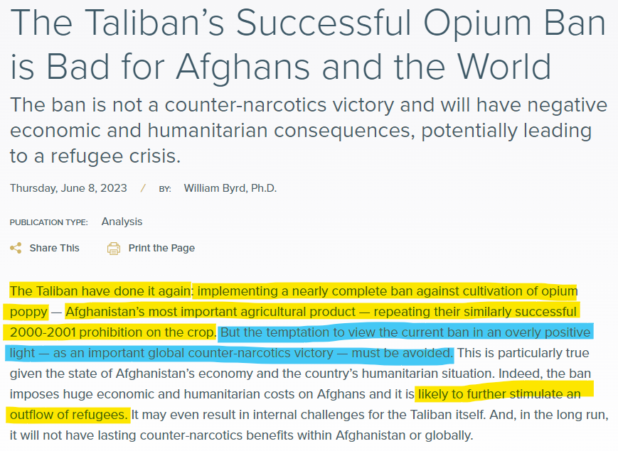 But as soon as the US troops leave and the Taliban takes over, the opium trade is banned and there is a clear victory over the whole production machine from that region.