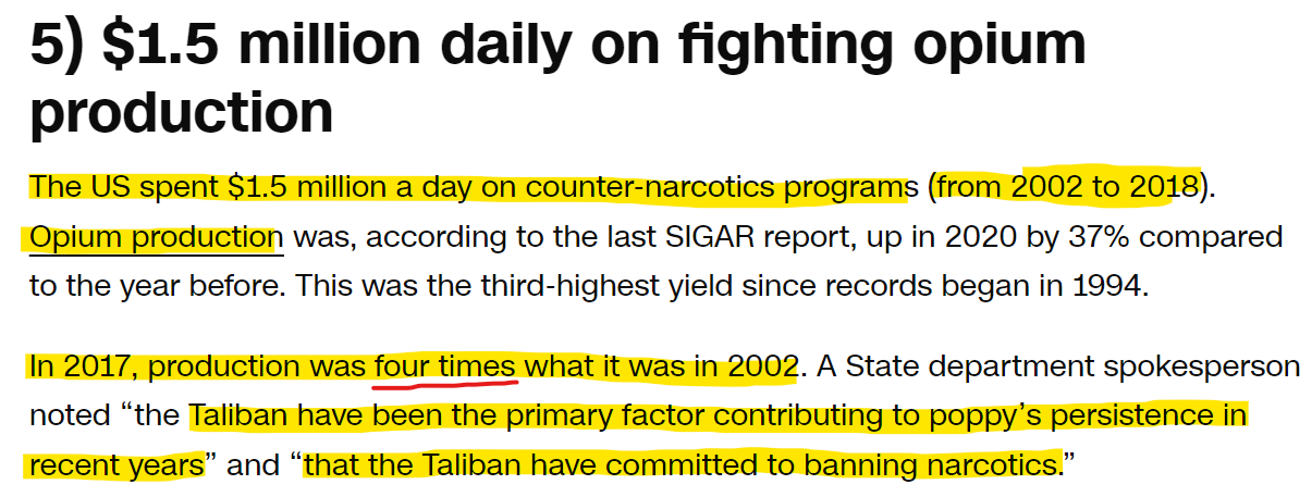 The US Government spent $1.5 million a day in "fighting opium production". At least for the rest of us.