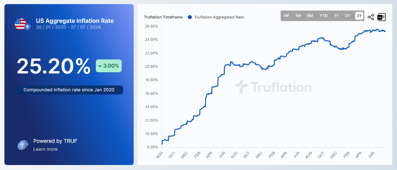 What this has meant for the American taxpayer is crippling inflation. Over 25% in 4 years!