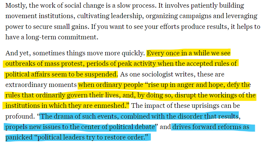 Crisis was the goal. Interestingly Cloward and Piven kept calling the various crises like riots as spontaneously occurring when they did understand that they were the intended results of the tactics the protesters would undertake.