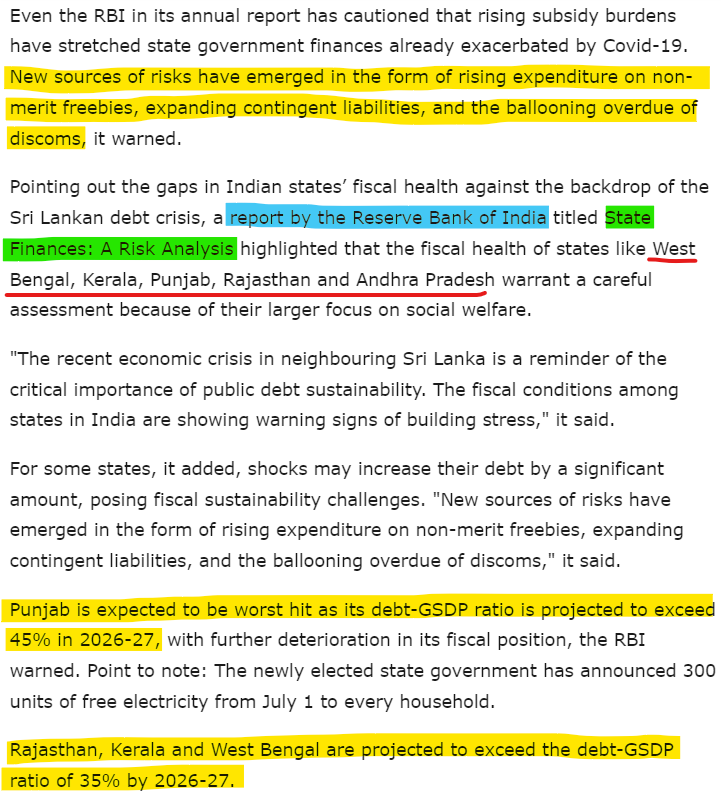 By 2022, the states had a whopping INR 1.37 lakh crores as outstanding dues to the discoms. And when they cleared some of them off, they took loans from Power Finance Corporation Ltd. From the State's financial standpoint, it was nothing more than a sleight of hand where the debt was moved from one hand to another. But check the headline below of one of the mainstream news media on this!