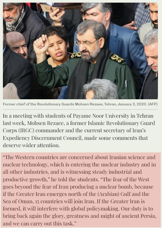 Iran has been looking to create a "Greater Iran". In December 2020, Mohsen Rezaee, a former Islamic Revolutionary Guard Corps (IRGC) commander and the then secretary of Iran’s Expediency Discernment Council gave a speech at Payame Noor University in Tehran. What he said was very interesting!