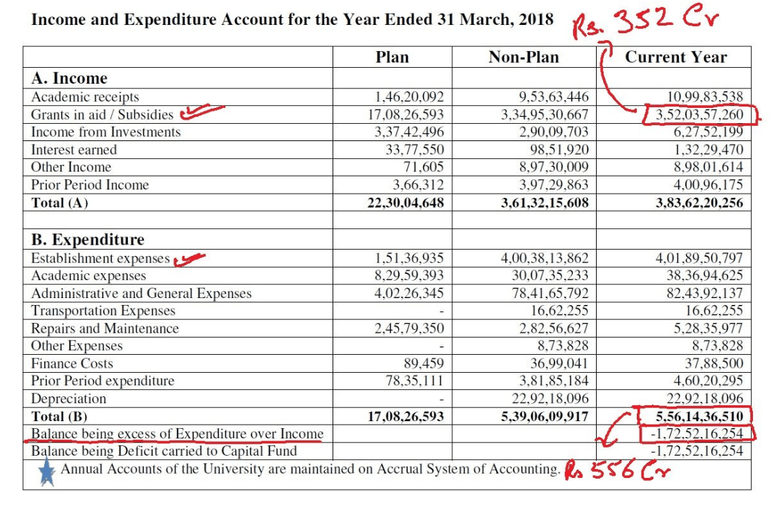 The total expenditure on JNU is Rs 556 crores – or Rs 6,95,000 per student per year!