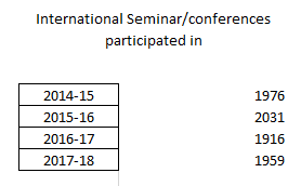 Every year, each student in JNU attends 0.45 seminars or conferences. Or in other words, half of all the students are attending international seminars and conferences every year.